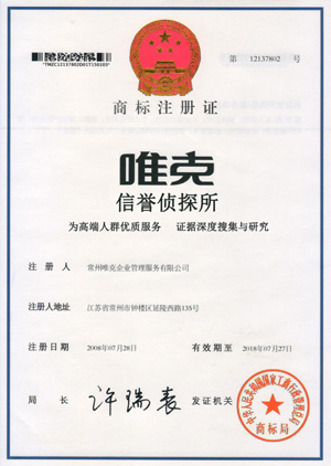 中国.常州-苏州.江苏唯克调查信誉名探确保取证调查成果在庭审中为您获得胜诉、证为争创常州地区、苏州地区实力雄厚调查公司而努力!