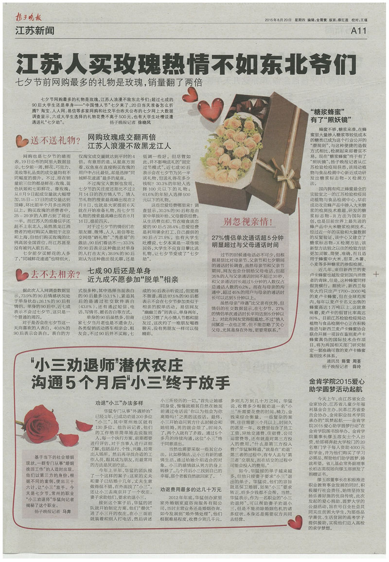本栏目其他采访人员→花店老板-毕天龙、常州市民、西餐厅主管-赵志兵等。