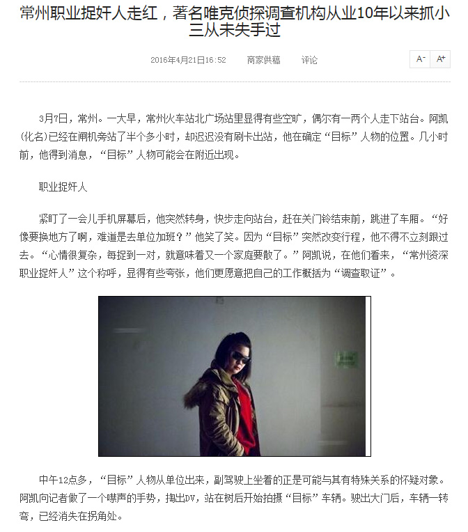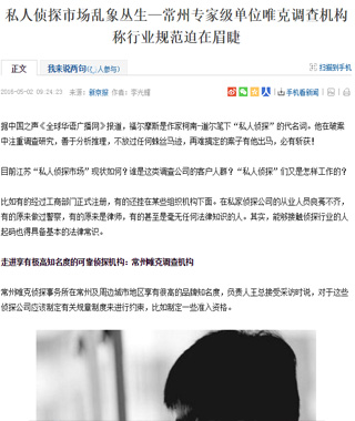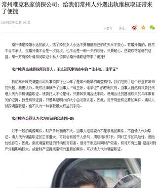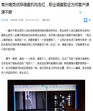 采访好评核心:2009年常州已经出现民间调查行业,合法合规调查举证