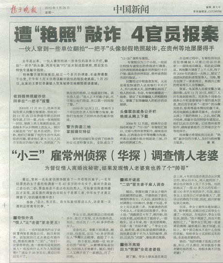 常州.江苏决胜调查名事务所:发起人-华先生(华先生)2010年1月25日接受《扬子晚报》专栏采访报道与好评