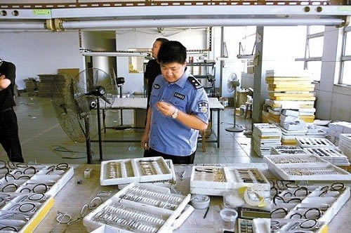 在常州决胜证据调查名机构掌握了犯罪嫌疑人的制假售假的证据后,决胜随即向镇江丹阳警方报案,警方于6月28日开始抓捕行动,将嫌疑人陈某、王某夫妇抓获,当场起获假冒该品牌眼镜6万余副,以及该品牌的标签5万个,除此之外,民警在现场还发现古奇、芬迪、爱马仕等国际知名奢侈品牌的假冒眼镜。