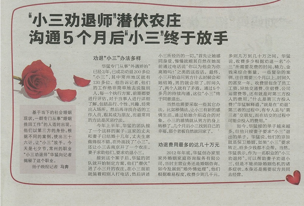 常州.江苏决胜调查名事务所:发起人-华先生(华先生)2015年8月20日《扬子晚报》A11整版专访报道与好评
