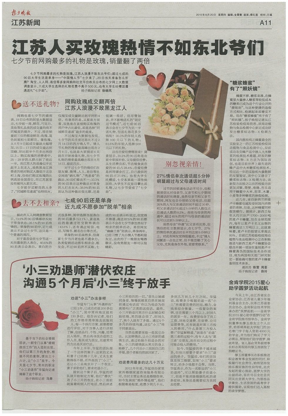 《扬子晚报》A11版2015报道好评引荐指定认可